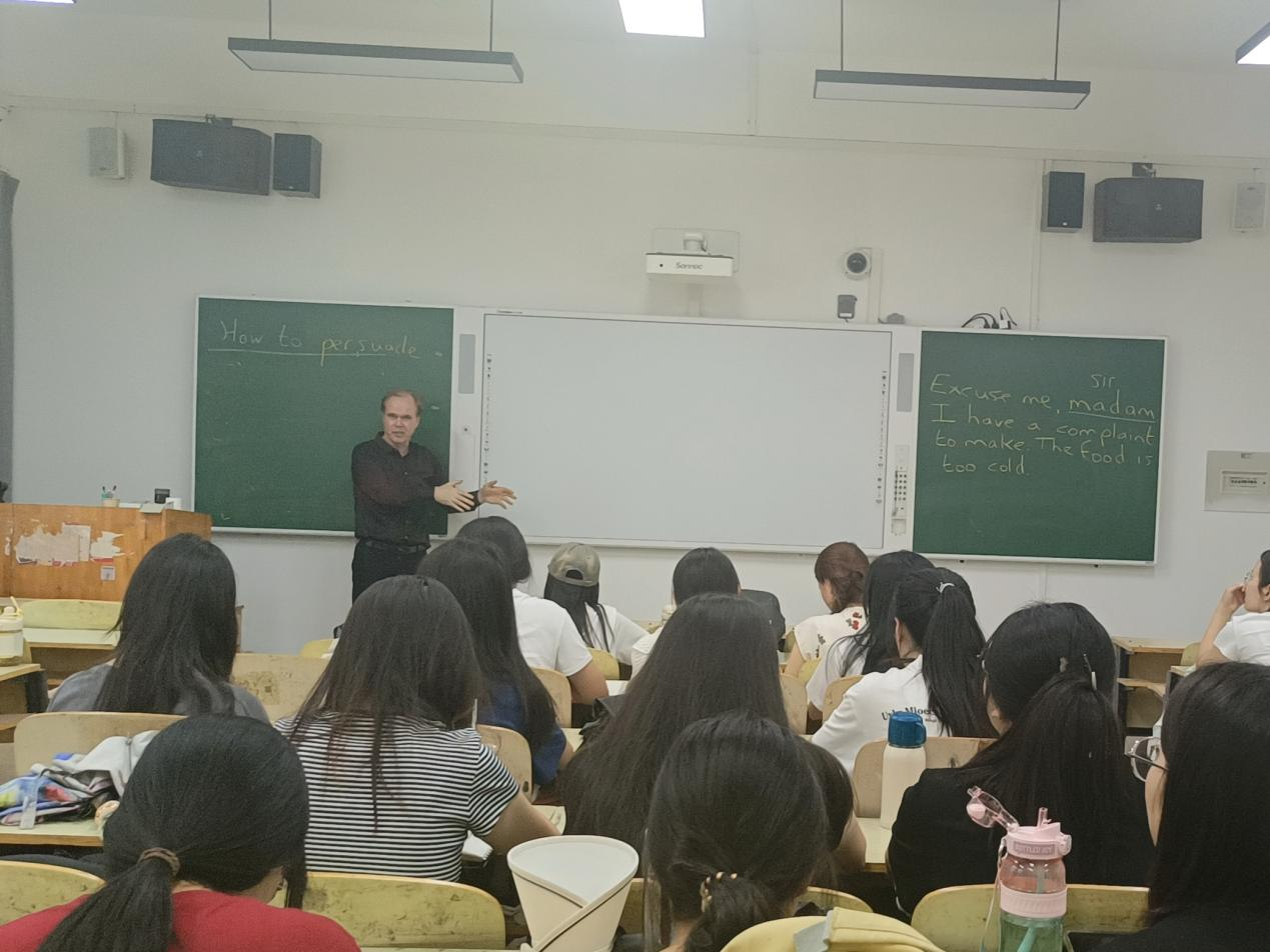 为提升学生英语交流中的实用表达能力,让语言学习融入真实生活场景,外国语学院于6月12日在二教B218开展了以 “How to Complain” 为主题的外教英语角活动。此次活动由外教老师Eugene主持。