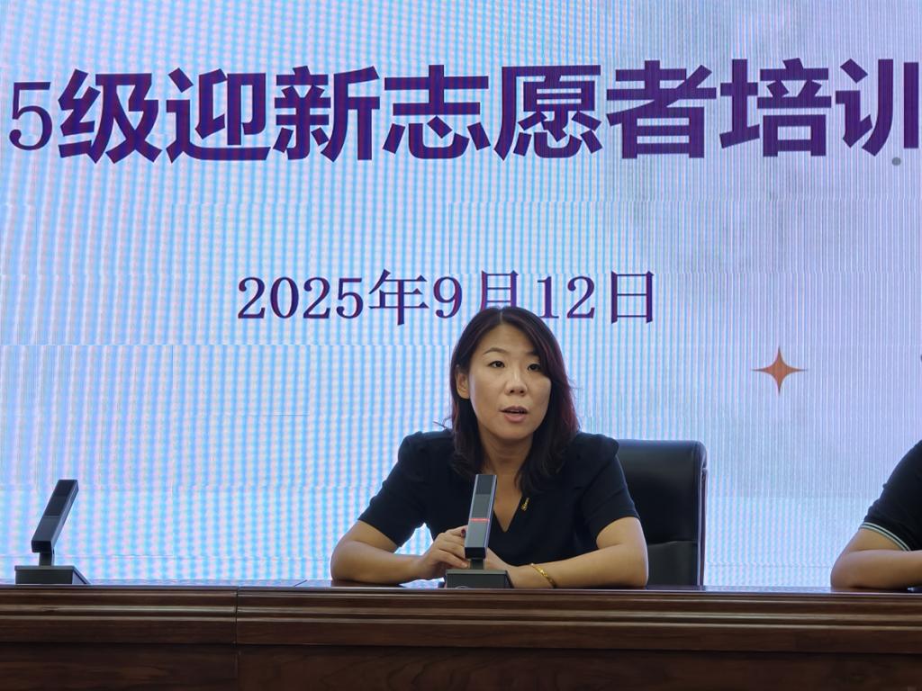为确保新学期迎新工作高效、有序开展,全面提升迎新服务质量,增强志愿团队的凝聚力和执行力,外国语学院于9月12日在第二报告厅召开迎新工作培训会。外国语学院党委副书记迟英娟、团总支书记牛荦、辅导员高晨轩、学生会全体成员及迎新志愿者共同参加。会议由团总支书记牛荦主持。