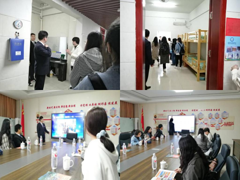 第五站是参观学生宿舍。张老师及领导带队员们去学生宿舍进行参观。宿舍里整齐划一的床铺,干净的墙面地面和清新的空气,队员们被其深深吸引。