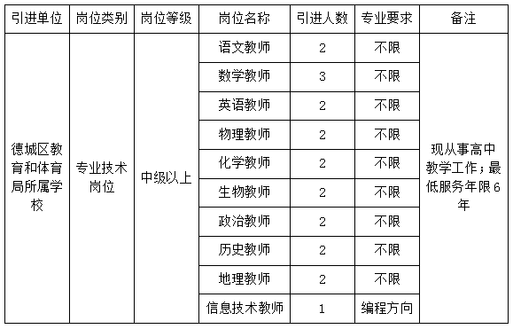 为贯彻落实山东省人才体制机制改革精神,依据《关于实施“人才兴德”行动建设新时代区域性人才聚集高地的若干措施》、《德州市事业单位高层次急需紧缺人才特聘办法》等有关规定及德城区教育工作实际,德城区教体系统拟面向省内外公开引进优秀教育人才20名,现将有关事项公告如下: