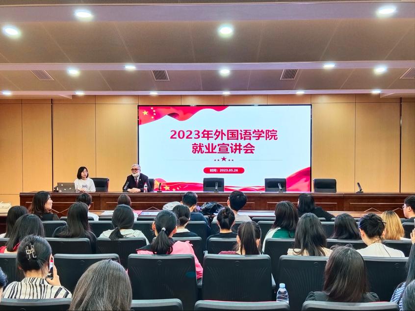 为引导学生树立正确就业观念,全面做好毕业生就业工作,促进毕业生高质量充分就业,外国语学院于5月26日上午在二教A111组织开展了2023届毕业生就业宣讲会。本次宣讲会特邀圣劳伦斯国际教育、山东开泰集团、山东胜晔磨球有限公司、新东方等六家企业到会宣讲。宣讲会由外国语学院党委副书记迟英娟主持,团总支书记牛荦,辅导员刘欣欣以及2023届毕业生参会。