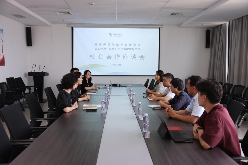 为进一步深化校企合作,拓宽学生就业渠道,推动人才培养与企业需求的精准对接,6月6日,外国语学院党政班子一行前往国药控股(山东)医疗器械有限公司开展访企拓岗。国药控股(山东)医疗器械有限公司公司总经理彭媛玲,党支部书记、副总经理张冬,总经理助理张洋参加交流活动。