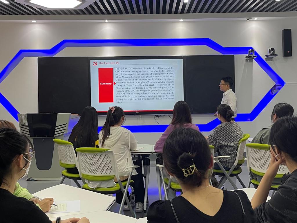 中英双语党课第一讲《A Brief Introduction to the First National Congress of the CPC》由学院党委副书记栾毅之开讲。课程围绕伟大建党精神的内涵、为什么要践行伟大建党精神、革命先烈和英雄模范对伟大建党精神的伟大实践以及伟大建党精神对当代青年的时代价值等方面,向学生党员们讲述了革命先烈践初心担使命的感人故事,回顾了百年来中国共产党带领中国人民取得的伟大成就,剖析了伟大建党精神引领一代代共产党人英勇奋斗的磅礴力量以及蕴含的时代价值,教育青年党员用信仰之力开创美好未来,把青春奋斗融入党和人民事业,勇于担当民族复兴大任。学员们纷纷表示双语党课形式活泼,内容丰富,既是一堂深刻的党性教育课,又是一堂生动的专业学习课。