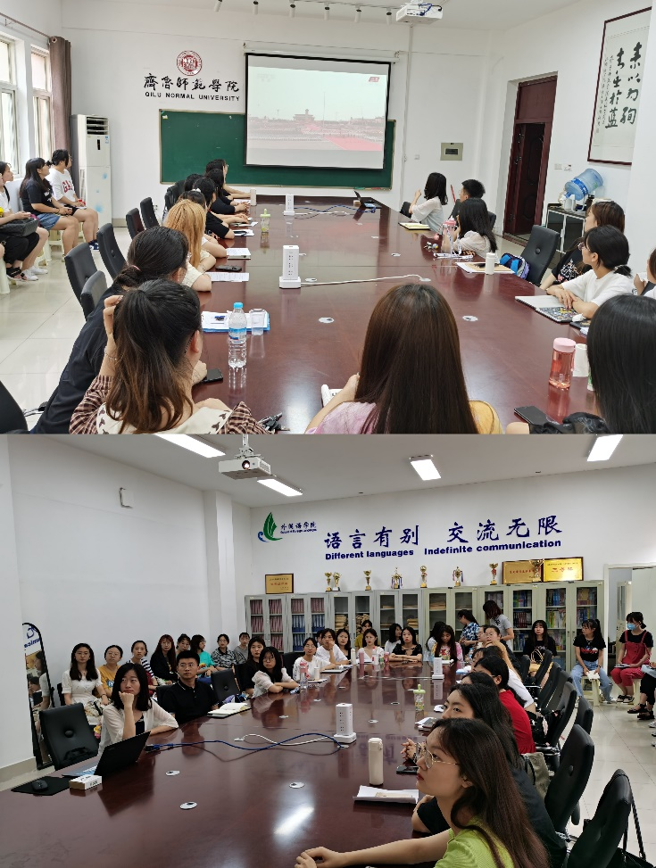 外国语学院于7月1日上午8:00,在学院会议室组织学生党支部全体党员共同观看“庆祝建党100周年大会”直播。外国语学院团总支副书记孙海燕、辅导员王伟、全体学生党员和预备党员共同参加。