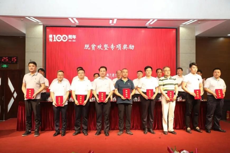 图为:外国语学院党总支书记贾国斌荣获“脱贫攻坚先进个人”荣誉称号。