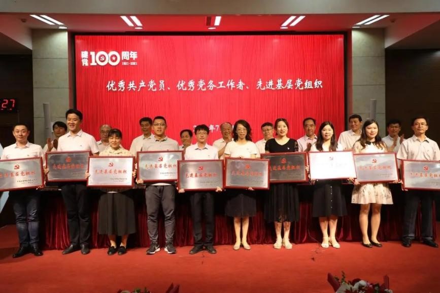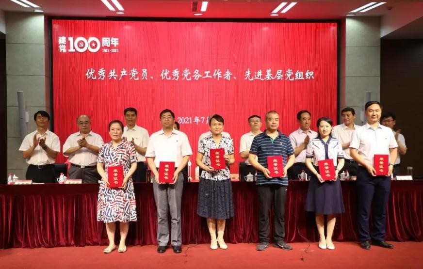 图为:党总支副书记郁志营荣获“优秀党务工作者”荣誉称号。