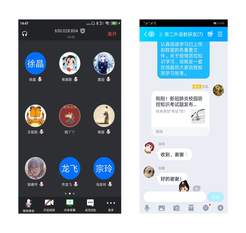 期间,教师第一党支部、教师第二党支部第二外语教研室与英语专业教研室的全体教师参加线上学习培训,学习培训参照网上会议、教学的方式,采用腾讯会议、线上群语音通话等形式进行。针对当前疫情形势,教师们认真学习学校《新冠肺炎疫情防控工作理论学习资料汇编》等文件,着力提升个人责任思想意识。全体教职工积极学习,从预防、个人卫生防护等多个方面认真了解当前疫情形势,并针对当前现状进行下一步的具体教学安排。