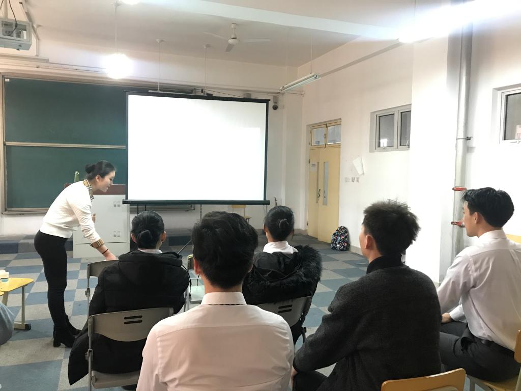 12月19日上午,我院聘请山东青年政治学院舞蹈表演专业教研室主任、副教授薛亮、山东旅游职业学院培训专员马敬敬来我院对2019届校企合作(航空乘务、航空服务)学生做吉祥航空公司校招面试培训。我院党总支书记贾国斌及团总支成员到场观摩授课。