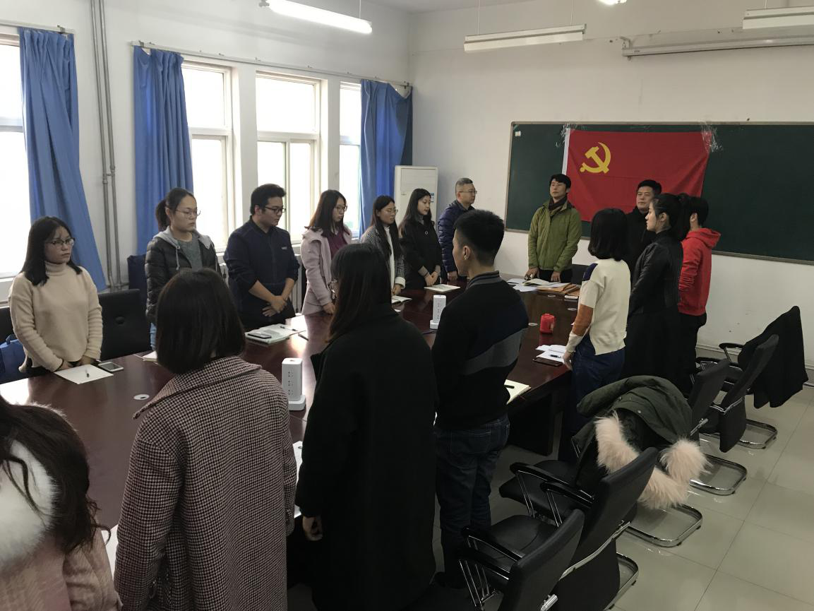 11月27日,外国语学院党支部发展对象转预备党员会议在一号教学楼外国语学院会议室召开,本次大会旨在吸纳优秀同志壮大党员队伍,为支部将来的发展打下坚实的基础。校党委组织部派组织员宋新刚、陈利虎同志到我院指导监督组织发展工作,我院党总支书记贾国斌,学生党支部全体成员,及新发展党员参加此次会议。会议由牛荦主持。
