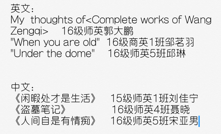 上一条:外国语学院参加齐鲁师范学院与施家崖村举行美丽乡村共建结对仪式 下一条:我院社团洋话连篇俱乐部举办“英语角——读书分享”活动