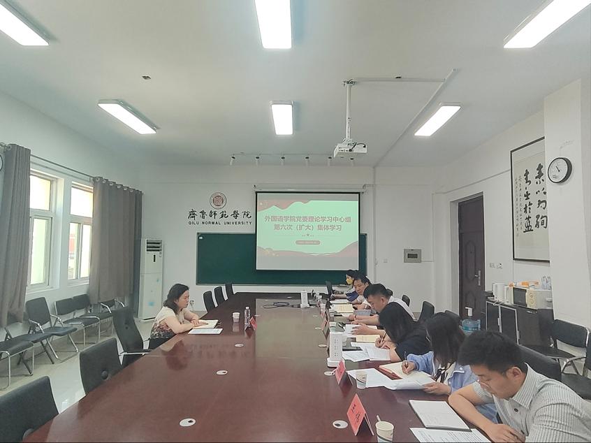 根据学校主题教育工作安排,6月8日上午,党委副书记赵敏参加并指导外国语学院党委理论学习中心组(扩大)第六次集体学习,外国语学院党委理论学习中心组全体成员参加会议,会议由外国语学院党委书记于江主持,外国语学院院长宋秀葵、学院教学管理人员和辅导员列席参加。
