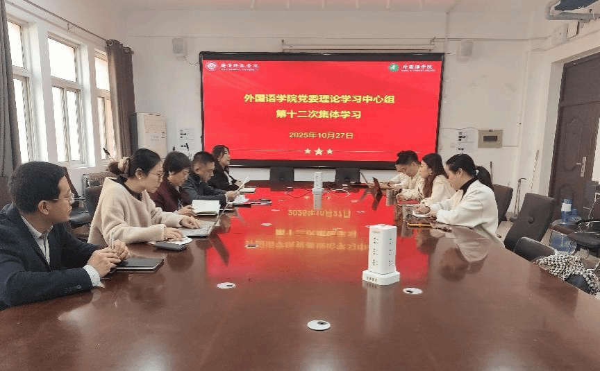 10月27日,外国语学院党委理论学习中心组进行本年度第十二次集体学习。学院党委理论学习中心组全体成员参加学习,学院院长宋秀葵、副院长邹德平列席参加学习,会议由学院党委书记于江主持。