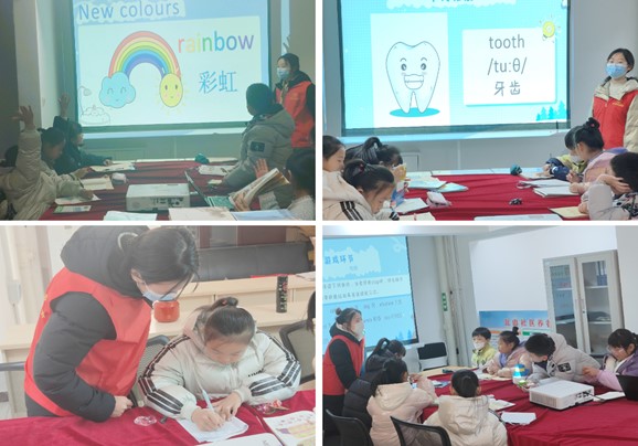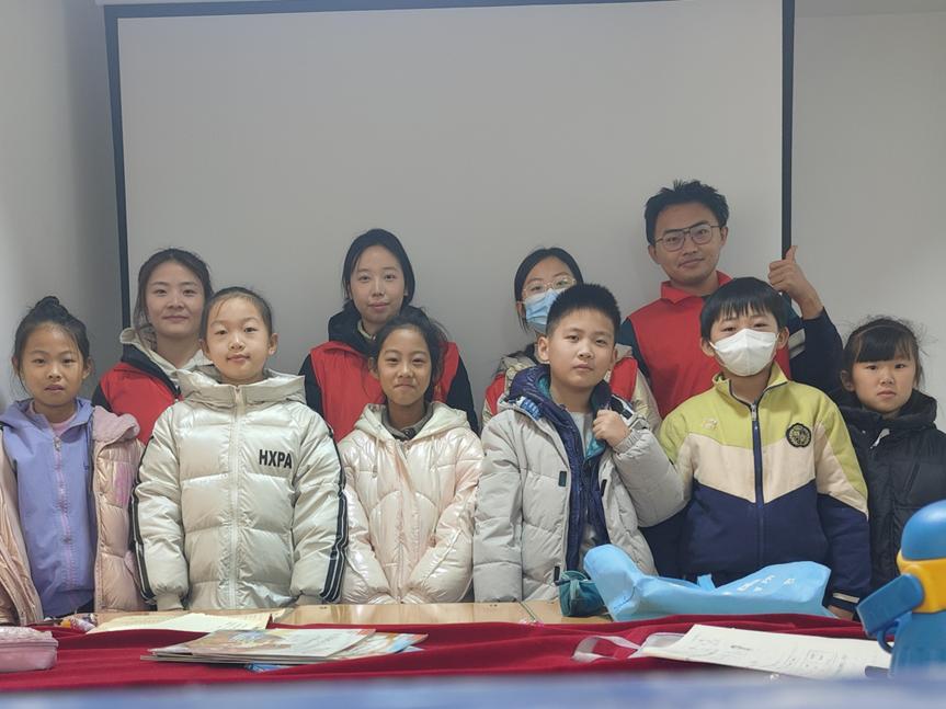 12月23日,外国语学院支教服务队在章丘区双山街道瓦山社区开展了第十期支教志愿服务活动,参加本次支教活动的同学有庞欣,郭惠萍,段贝尔,王靖豪四名同学。冰雪尚未完全融化,志愿者们穿着御寒的衣服,脚踩着厚重的雪地靴,走进社区,去迎接怀揣期待的孩子们。