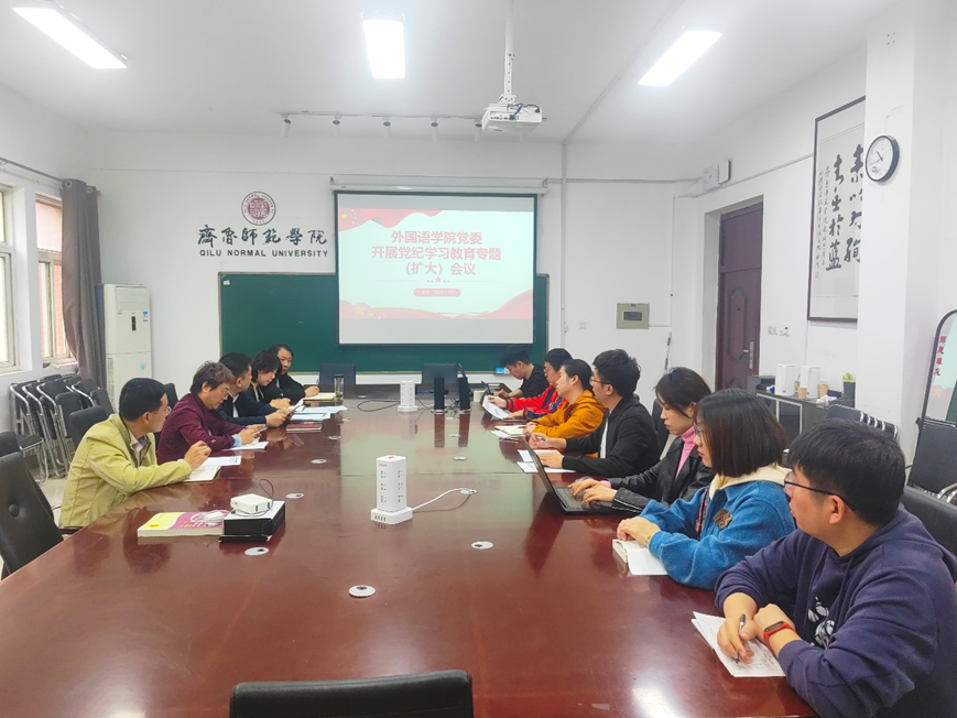 为深入学习贯彻习近平总书记关于党纪学习教育的重要讲话和重要指示精神,落实学校党委在党的建设工作领导小组会议中有关党纪学习教育的部署要求,4月15日上午,外国语学院召开党委会(扩大)会议,专题研究部署党纪学习教育工作。学院党委委员、党支部书记及科级干部参加会议,院长宋秀葵列席会议。会议由学院党委书记于江主持。