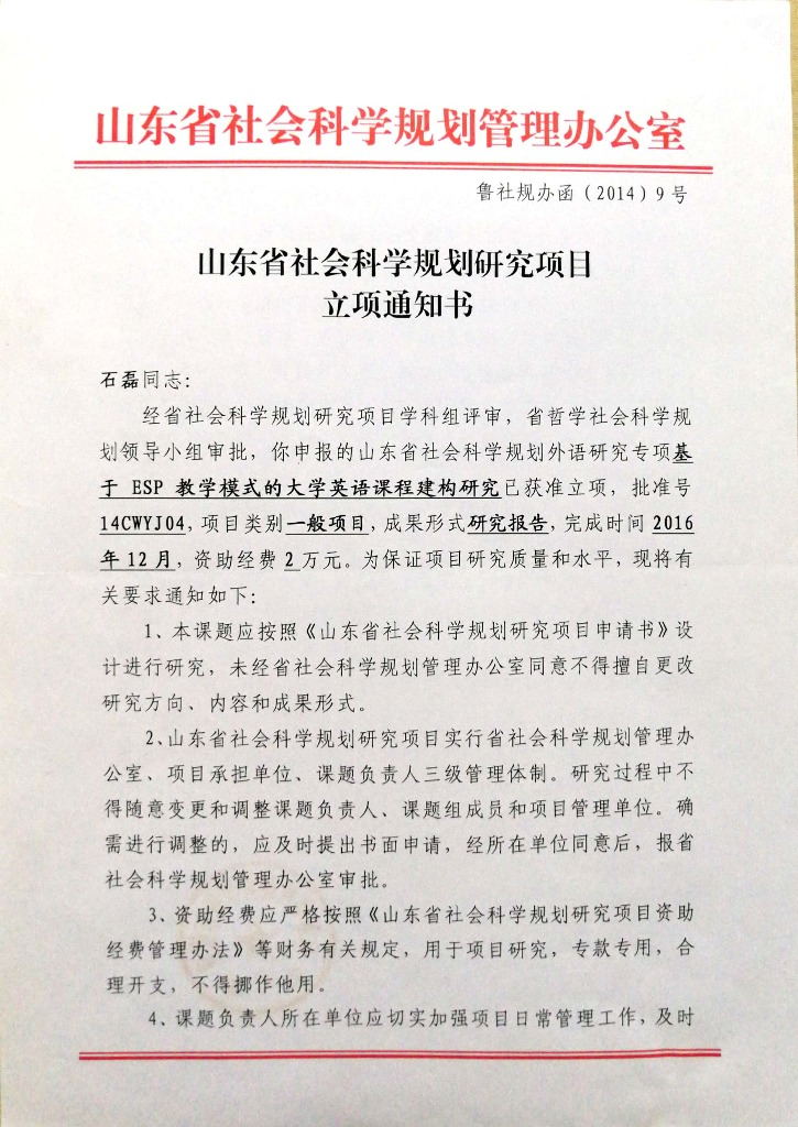 石磊2014-省社科立项