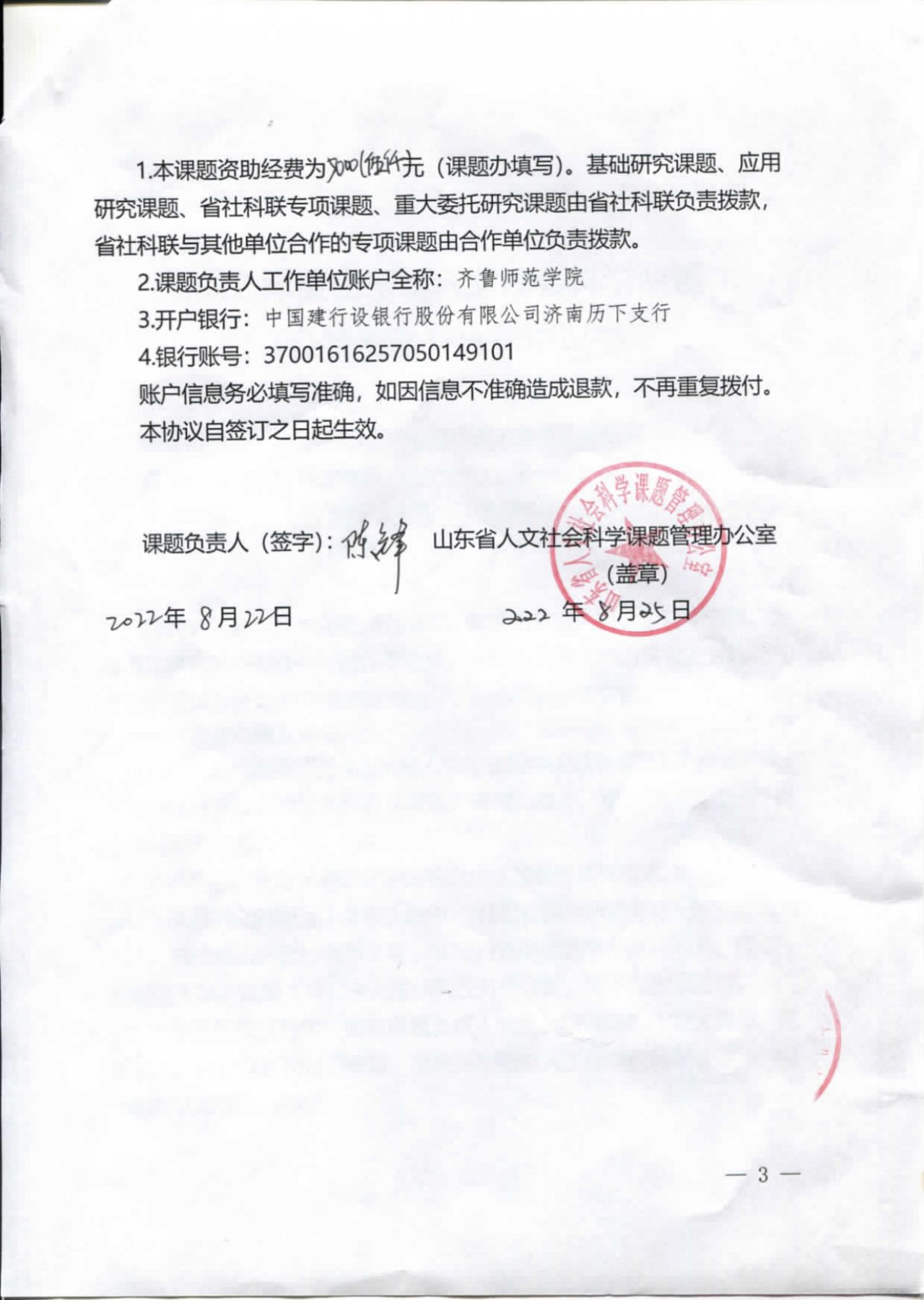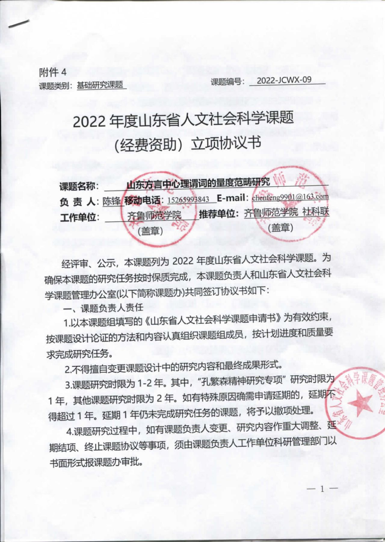 陈锋-2022年度山东省“黄河流域生态保护和教育高质量发展”教育教学专项课题立项通知书