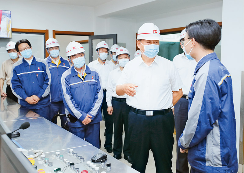 2020年8月18日至21日,中共中央总书记、国家主席、中央军委主席习近平在安徽省考察。这是19日上午,习近平在马鞍山市中国宝武马钢集团优质合金棒材车间考察,了解企业复工复产和经营情况。 新华社记者 鞠鹏/摄