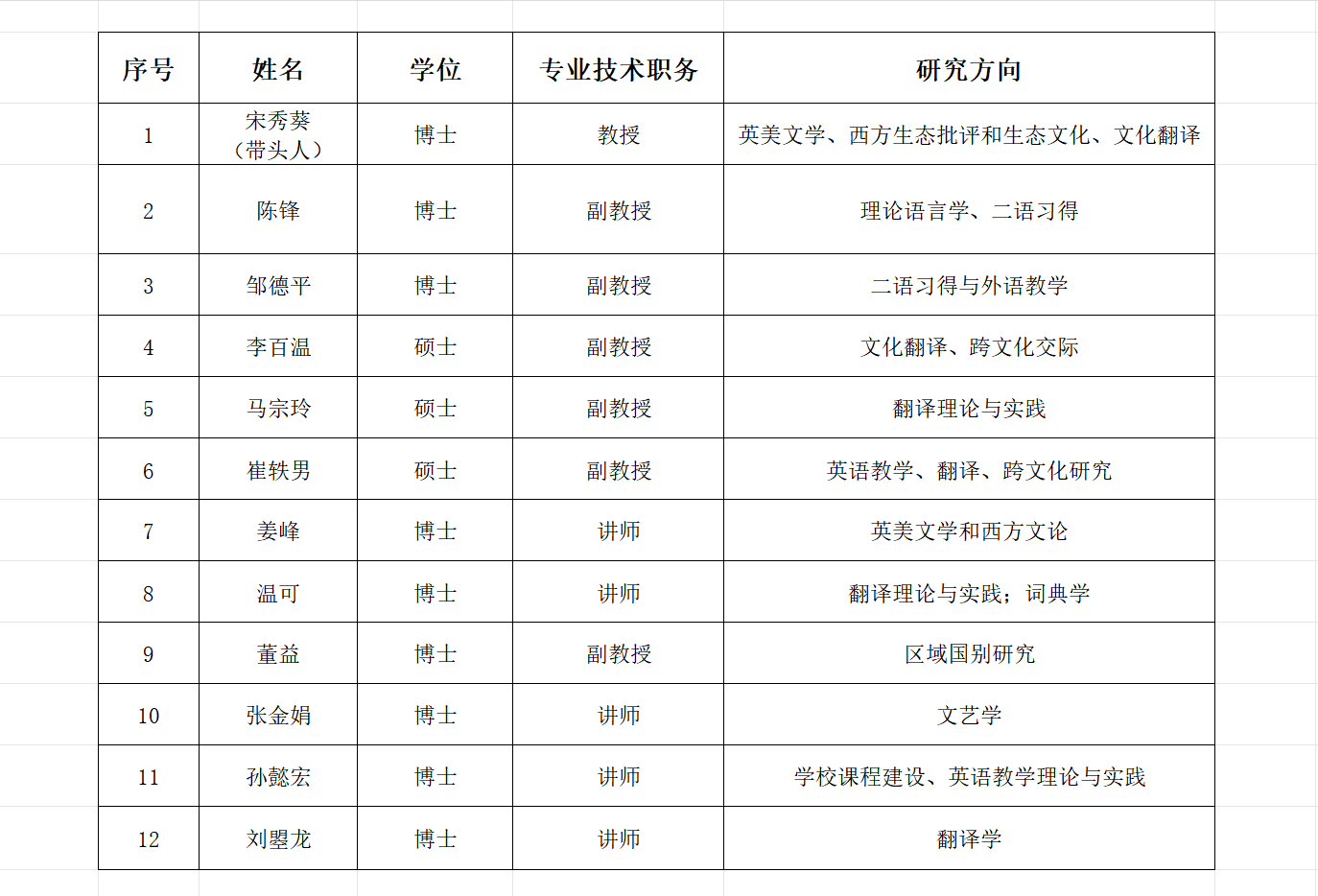 现有成员12人,其中教授1人,副教授5人,博士9人,硕士生导师3人,山东省教学名师1人。近年来,团队先后承担包括国家社科基金项目、教育部人文社科项目、山东省社会科学规划项目在内的各类项目20余项,出版相关研究专著、译著30余部,发表SSCI、A&HCI、CSSCI、SCI、EI以及中文核心等高水平论文20余篇,入选国家级一流本科课程1门,省级教学成果奖1项。