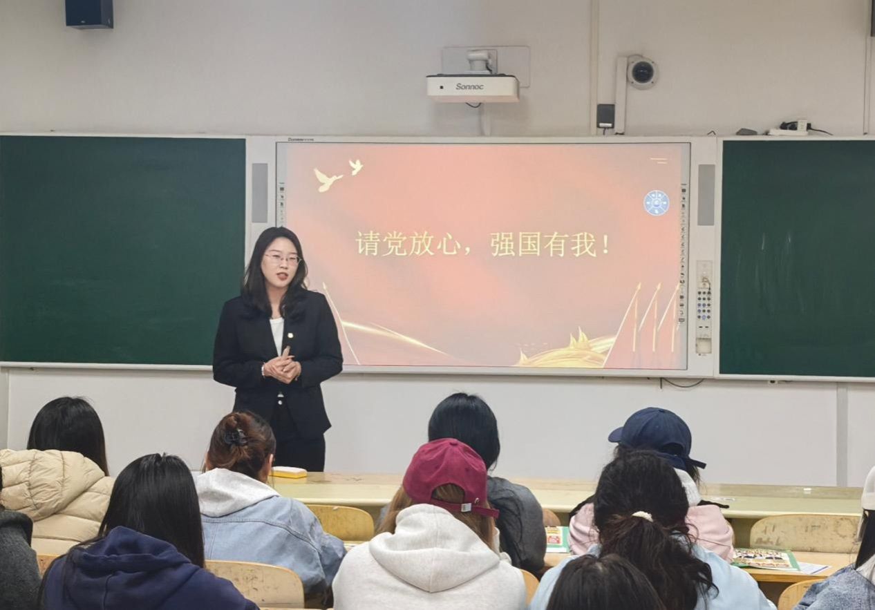 为深入学习贯彻习近平新时代中国特色社会主义思想,引导青年学子将党的理论学习与专业成长、使命担当相结合,自觉把个人理想融入强国建设、民族复兴的时代征程,4月9日外国语学院在二号教学楼A113教室开展“党的理论与青春使命”青年讲师团线下宣讲活动。本次活动以“青春逐梦新时代,外语青年担使命”为主题,由2023级英语(师范类)3班姜雯主讲,2024级商务英语(专科)专业全体同学到场参与。