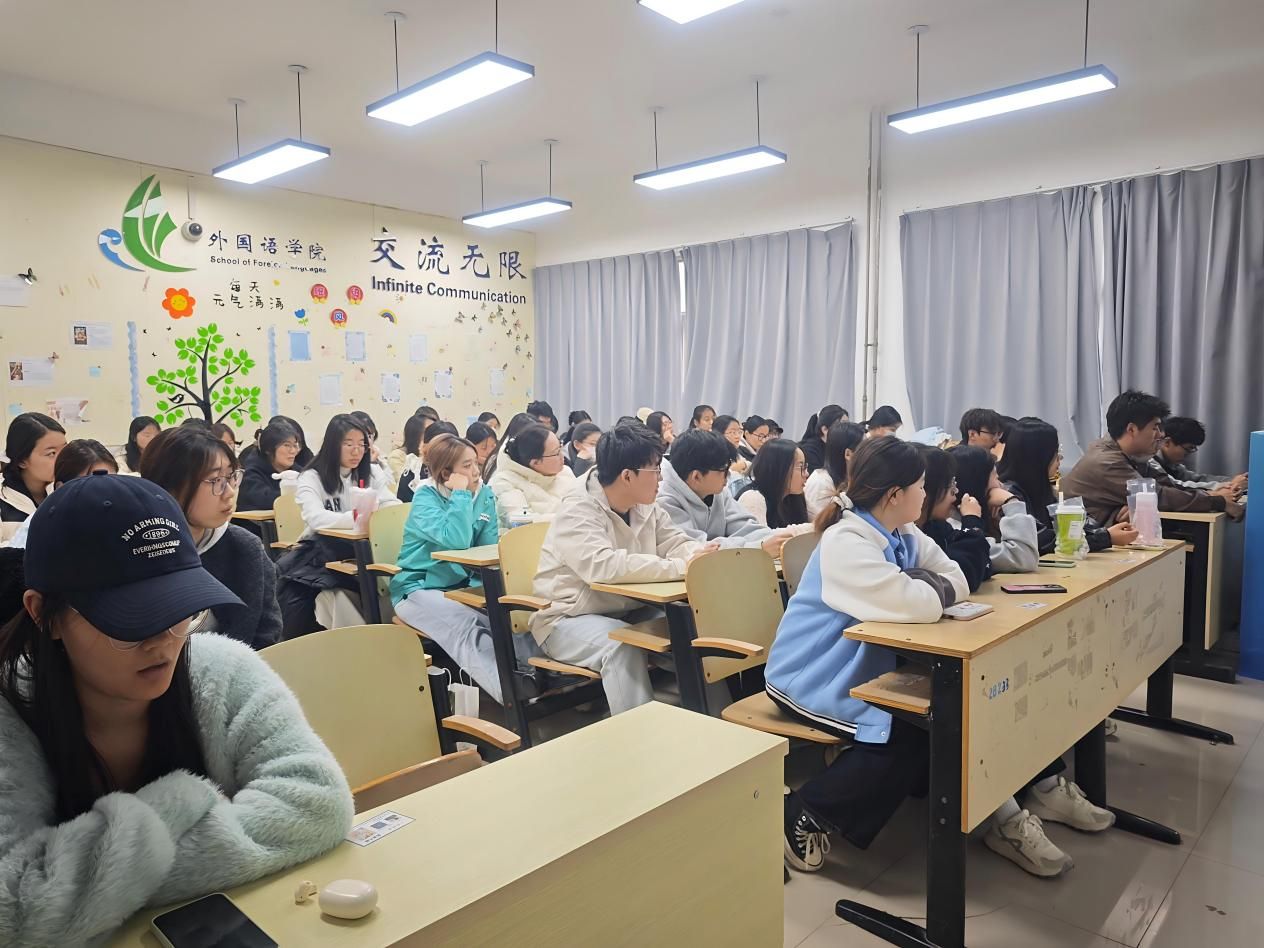 为帮助2027届本科学生明晰考研方向,科学制定备考规划,缓解备考焦虑,进一步营造学院浓厚的学术深造氛围,助力学子稳步迈向考研之路,4月9日,外国语学院举办2027届学生考研规划指导会。本次指导会由学院团总支书记牛荦担任主讲,2027届全体本科学生共同参与。